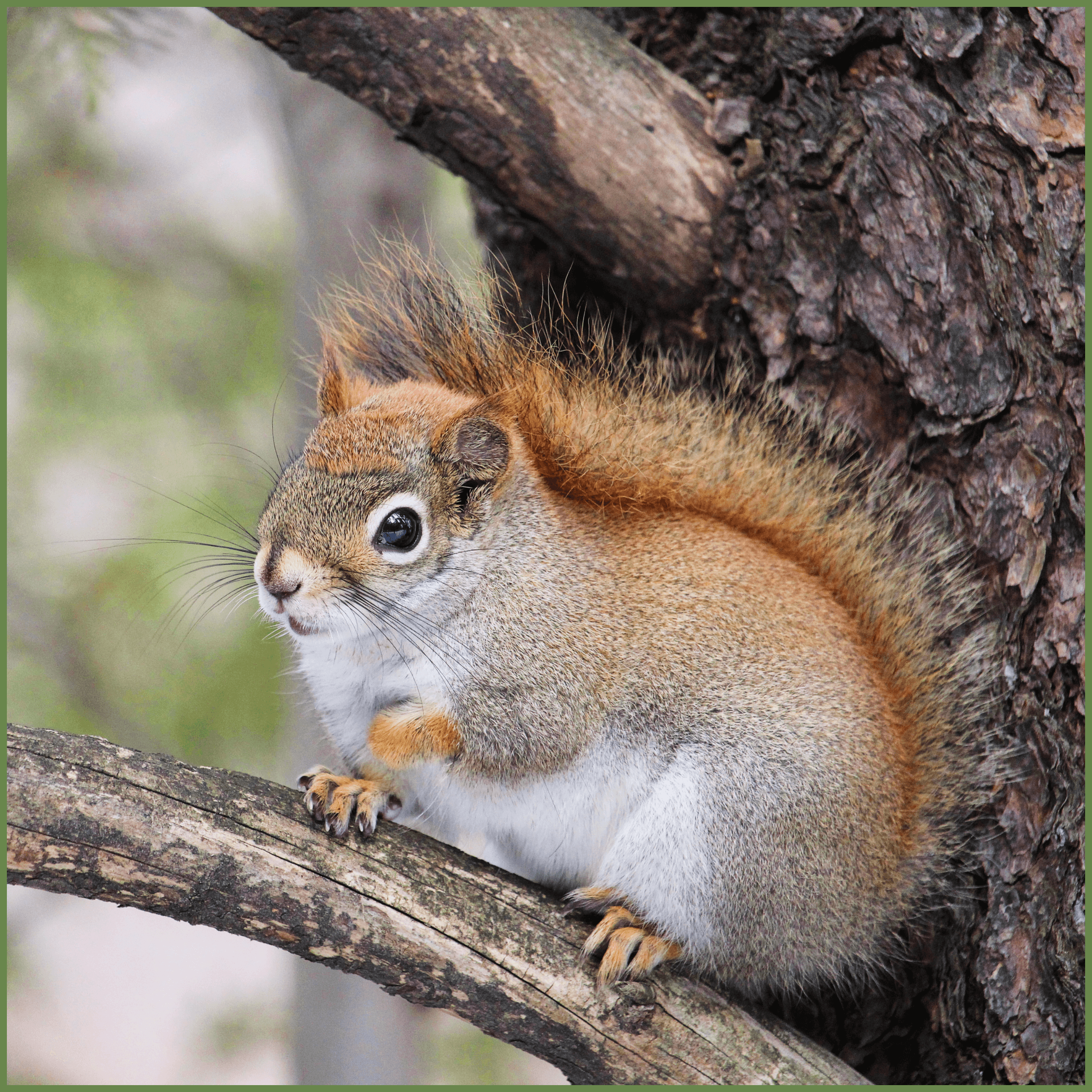 - Their thick bushy tails help with balance and warmth in colder months.