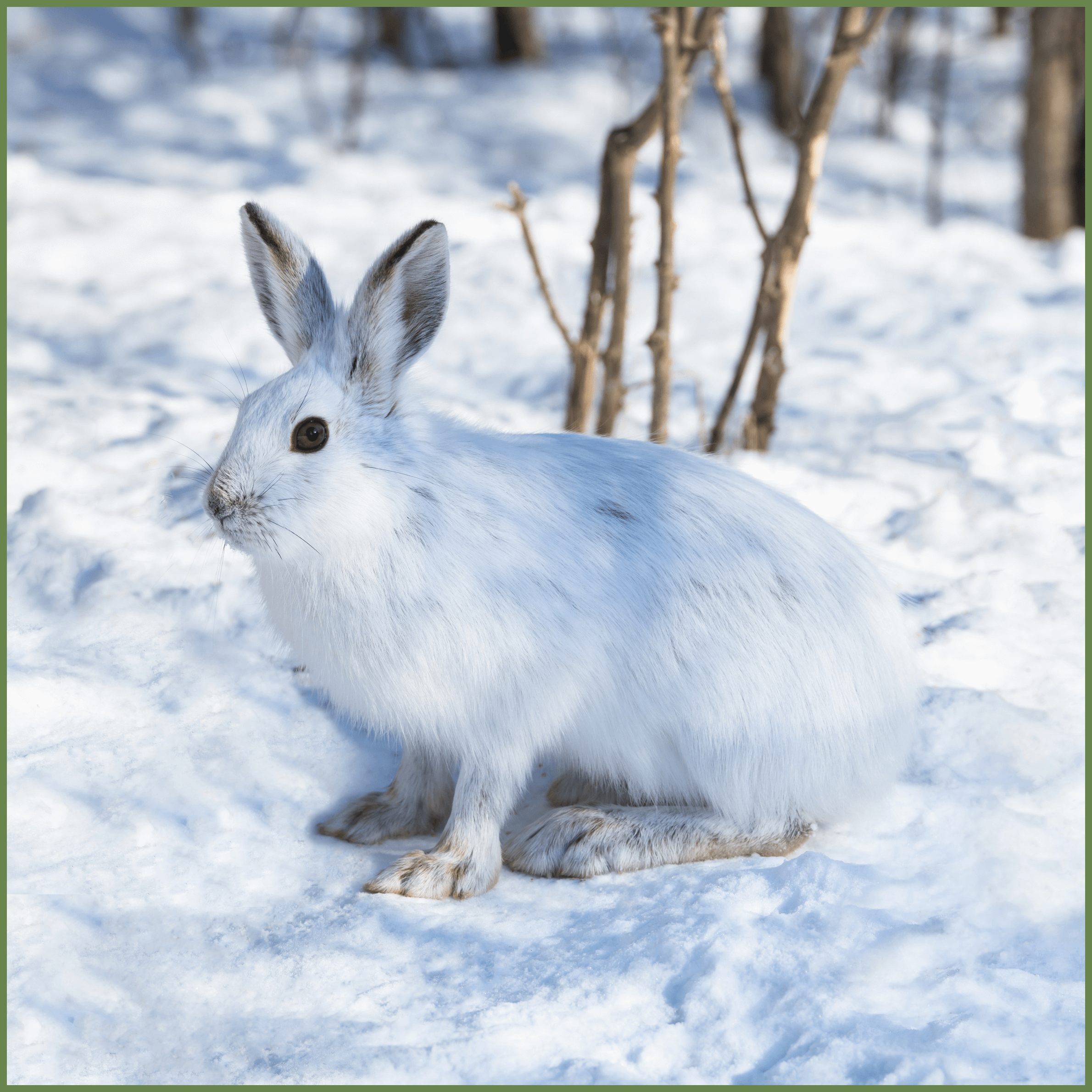 - Snowshoe hares change their fur colour with the seasons—from brown in summer to white in winter—for camouflage.